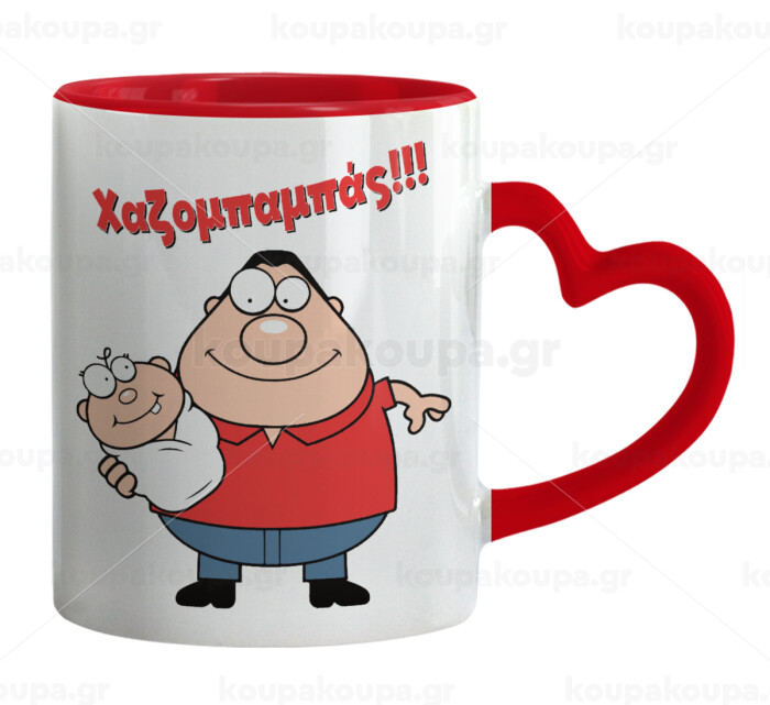 Χαζομπαμπάς, Κούπα καρδιά χερούλι κόκκινη, κεραμική, 330ml