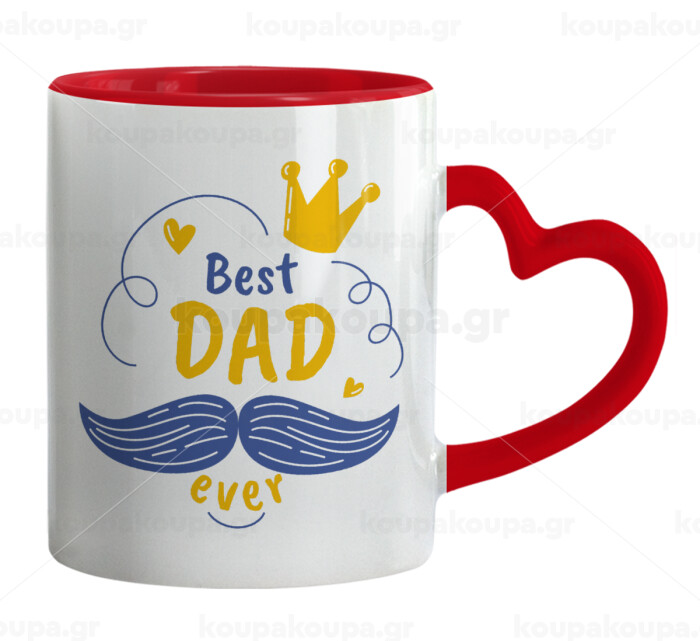 Best dad ever ο Βασιλιάς, Κούπα καρδιά χερούλι κόκκινη, κεραμική, 330ml
