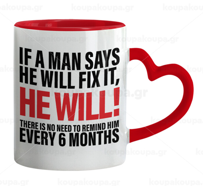 If a man says he will fix it He will There is no need to remind him every 6 months, Κούπα καρδιά χερούλι κόκκινη, κεραμική, 330ml