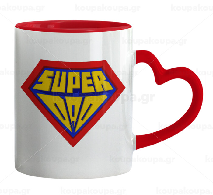 Super Dad 3D, Κούπα καρδιά χερούλι κόκκινη, κεραμική, 330ml