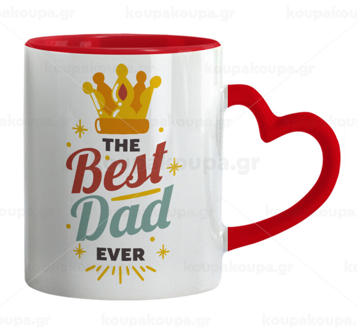 The Best DAD ever, Κούπα καρδιά χερούλι κόκκινη, κεραμική, 330ml