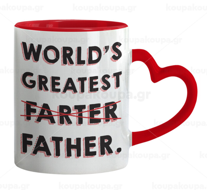 World's greatest farter, Κούπα καρδιά χερούλι κόκκινη, κεραμική, 330ml