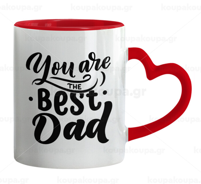 You are the best Dad, Κούπα καρδιά χερούλι κόκκινη, κεραμική, 330ml