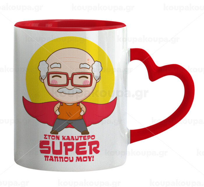 Στον καλύτερο Super παππού μου!, Κούπα καρδιά χερούλι κόκκινη, κεραμική, 330ml