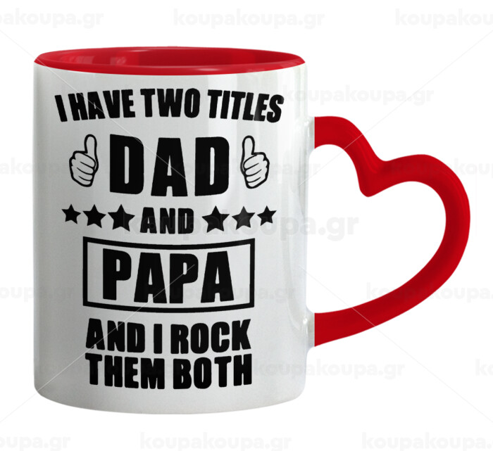 I have two title, DAD & PAPA, Κούπα καρδιά χερούλι κόκκινη, κεραμική, 330ml