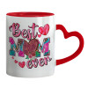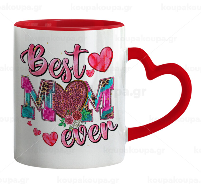 Best mom ever Mother's Day pink, Κούπα καρδιά χερούλι κόκκινη, κεραμική, 330ml