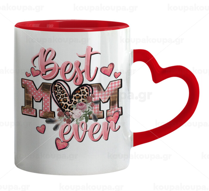 Best mom ever Mother's Day, Κούπα καρδιά χερούλι κόκκινη, κεραμική, 330ml