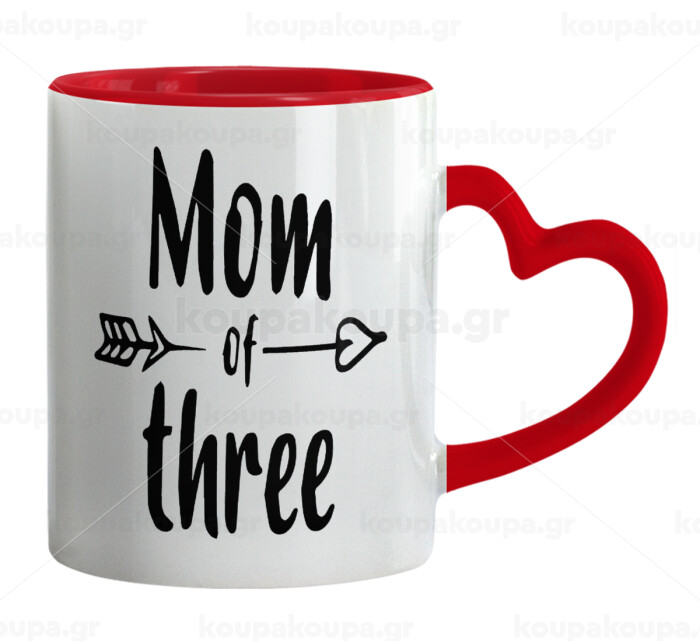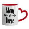 Mom of three, Κούπα καρδιά χερούλι κόκκινη, κεραμική, 330ml