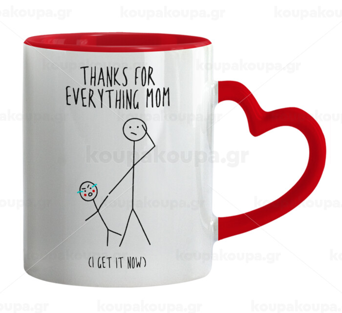 Thanks for everything mom, Κούπα καρδιά χερούλι κόκκινη, κεραμική, 330ml