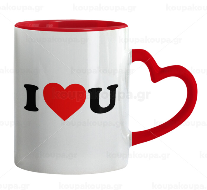 I ❤️ U, Κούπα καρδιά χερούλι κόκκινη, κεραμική, 330ml