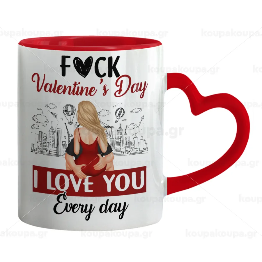 I love You Everyday , Κούπα καρδιά χερούλι κόκκινη, κεραμική, 330ml
