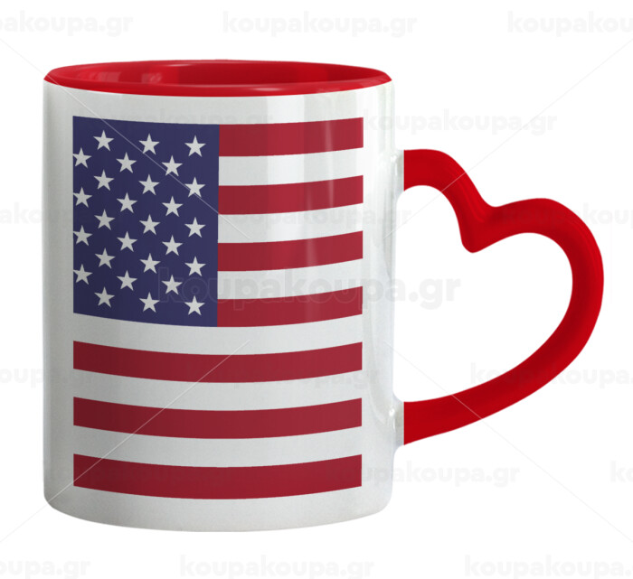 Σημαία Αμερικής, Κούπα καρδιά χερούλι κόκκινη, κεραμική, 330ml