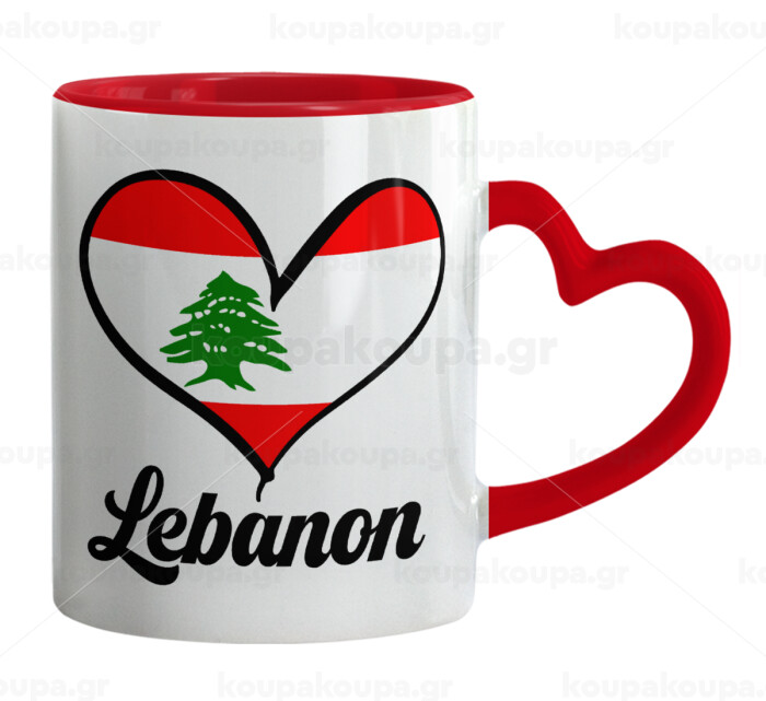 Lebanon flag, Κούπα καρδιά χερούλι κόκκινη, κεραμική, 330ml