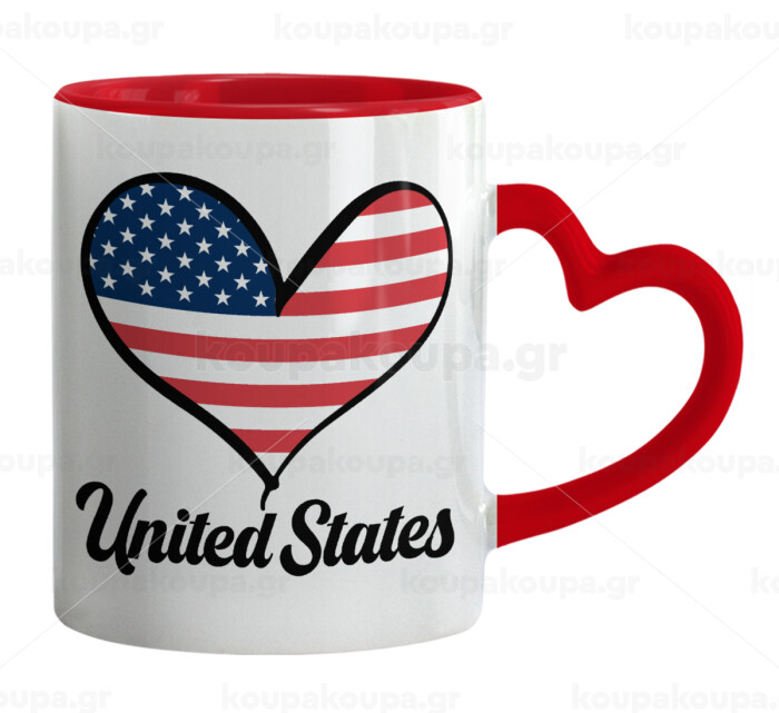 USA flag, Κούπα καρδιά χερούλι κόκκινη, κεραμική, 330ml
