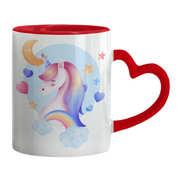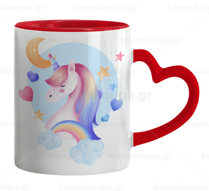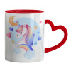 Μονόκερος, Κούπα καρδιά χερούλι κόκκινη, κεραμική, 330ml