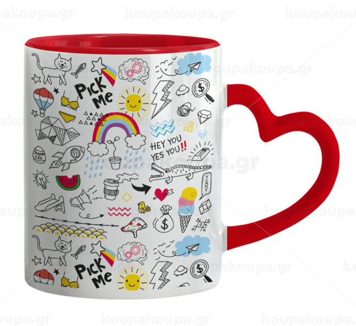 Doodle kids, Κούπα καρδιά χερούλι κόκκινη, κεραμική, 330ml