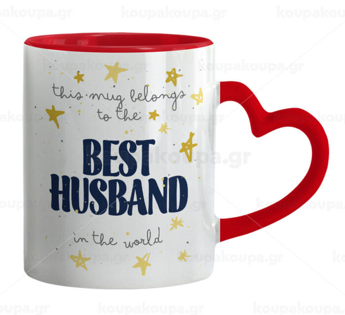 This mug belongs to the BEST HUSBAND in the world!, Κούπα καρδιά χερούλι κόκκινη, κεραμική, 330ml