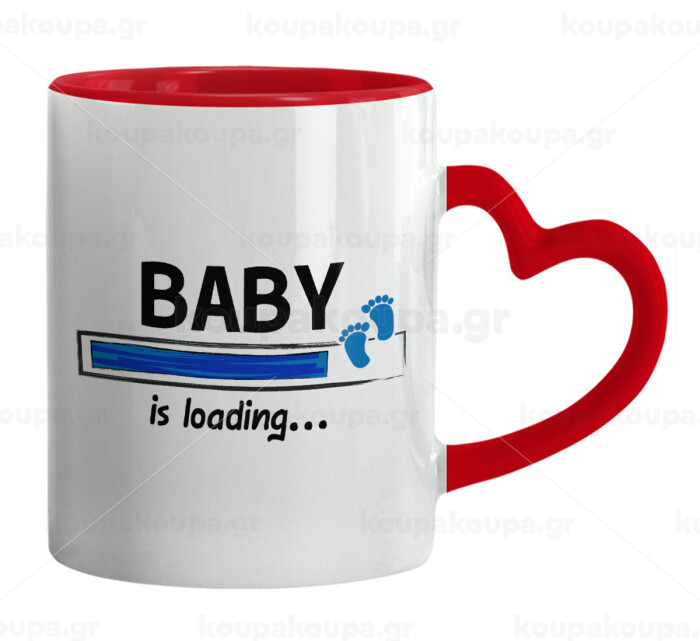 Baby is Loading BOY, Κούπα καρδιά χερούλι κόκκινη, κεραμική, 330ml