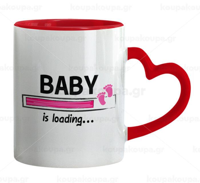 Baby is Loading GIRL, Κούπα καρδιά χερούλι κόκκινη, κεραμική, 330ml