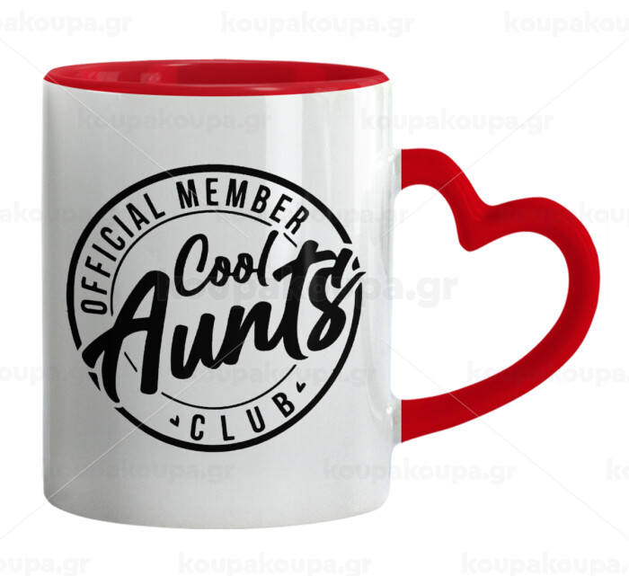 Cool Aunts club, Κούπα καρδιά χερούλι κόκκινη, κεραμική, 330ml