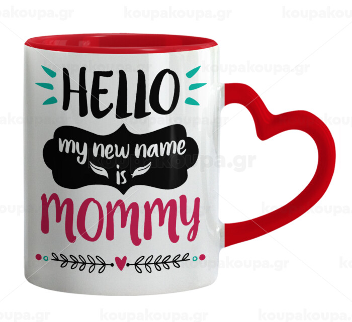 Hello, my new name is Mommy, Κούπα καρδιά χερούλι κόκκινη, κεραμική, 330ml