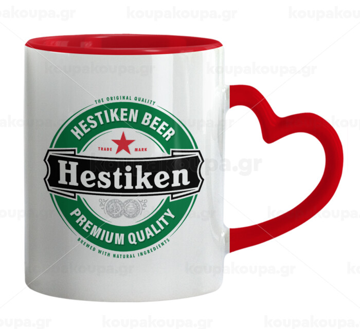 Hestiken Beer, Κούπα καρδιά χερούλι κόκκινη, κεραμική, 330ml