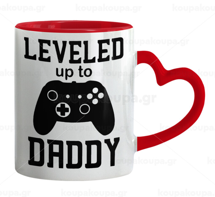 Leveled to Daddy, Κούπα καρδιά χερούλι κόκκινη, κεραμική, 330ml
