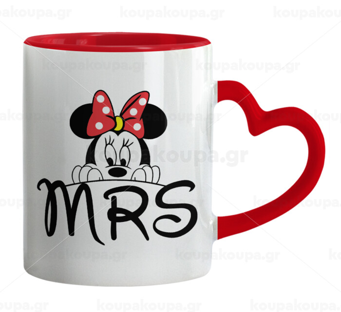Minnie Mrs, Κούπα καρδιά χερούλι κόκκινη, κεραμική, 330ml