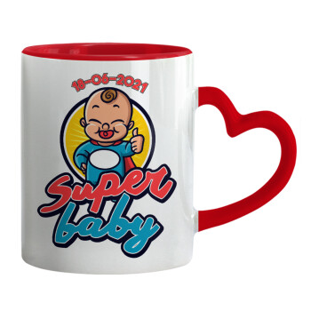 Super baby., Κούπα καρδιά χερούλι κόκκινη, κεραμική, 330ml