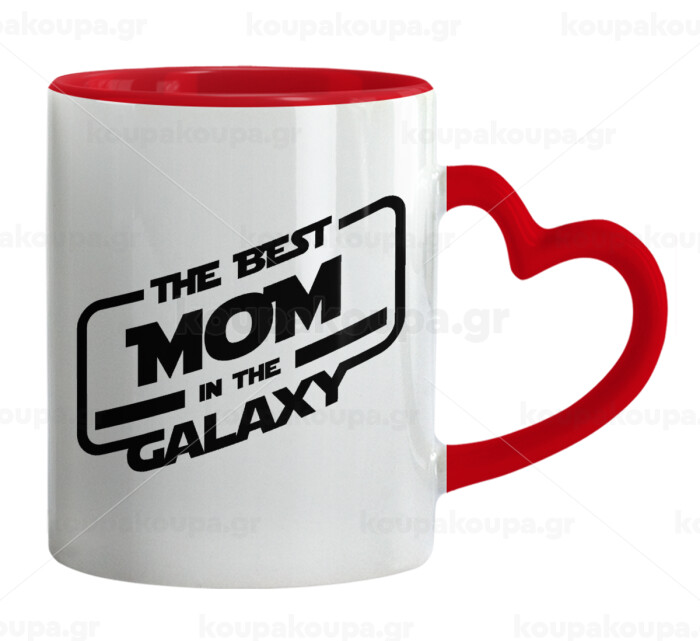 The Best MOM in the Galaxy, Κούπα καρδιά χερούλι κόκκινη, κεραμική, 330ml