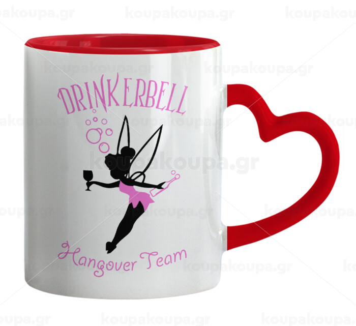 Drinkerbell bachellor, Κούπα καρδιά χερούλι κόκκινη, κεραμική, 330ml