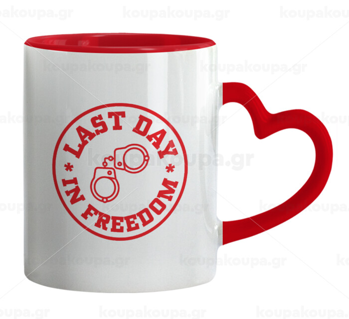 Last day freedom, Κούπα καρδιά χερούλι κόκκινη, κεραμική, 330ml