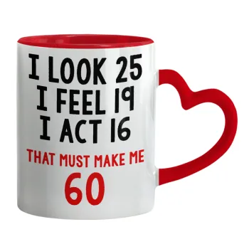 I look, i feel, i act..., Κούπα καρδιά χερούλι κόκκινη, κεραμική, 330ml