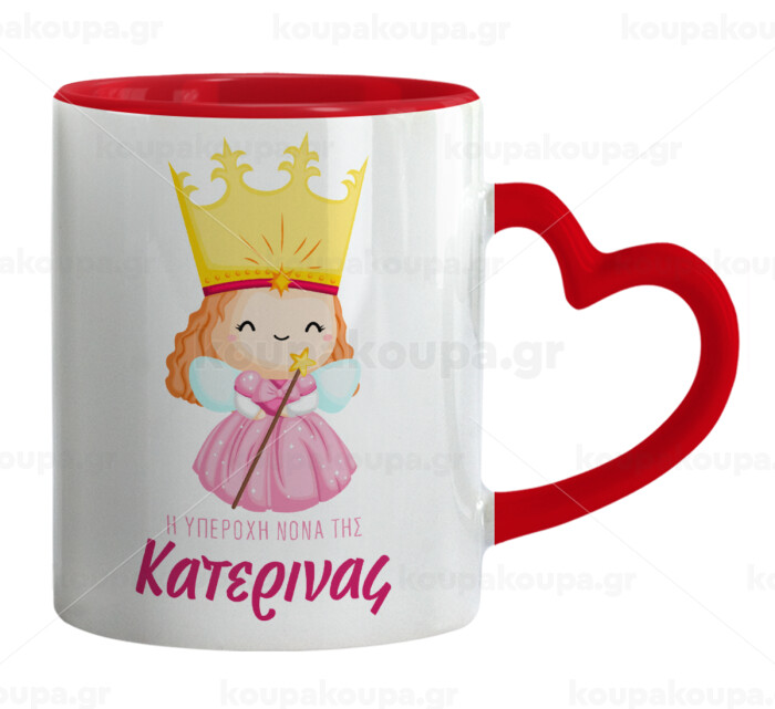 Η νονά μου, πριγκίπισσα, Κούπα καρδιά χερούλι κόκκινη, κεραμική, 330ml