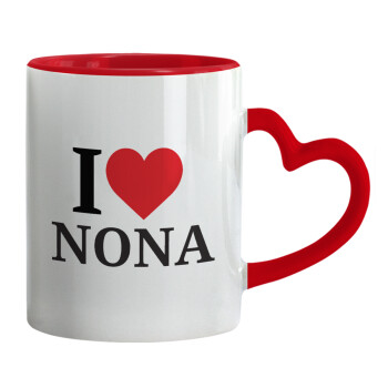 I Love ΝΟΝΑ, Κούπα καρδιά χερούλι κόκκινη, κεραμική, 330ml