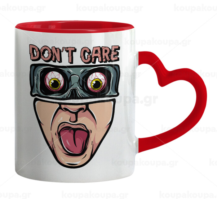 Don't Care, Κούπα καρδιά χερούλι κόκκινη, κεραμική, 330ml