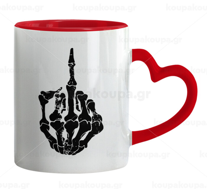 Middle finger, Κούπα καρδιά χερούλι κόκκινη, κεραμική, 330ml