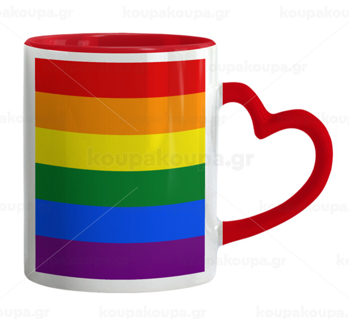 Rainbow flag (LGBT) , Κούπα καρδιά χερούλι κόκκινη, κεραμική, 330ml