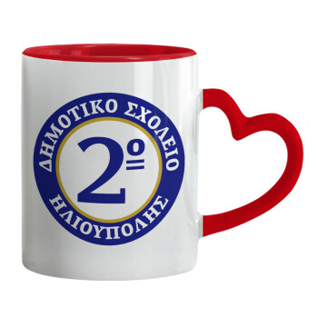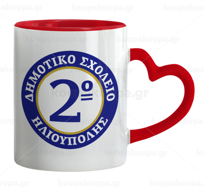 Έμβλημα Σχολικό μπλε/χρυσό, Κούπα καρδιά χερούλι κόκκινη, κεραμική, 330ml