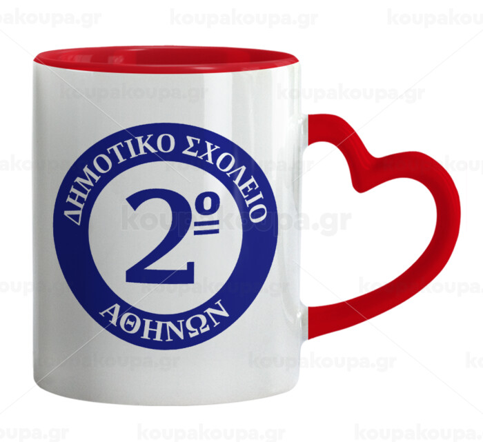Έμβλημα Σχολικό μπλε, Κούπα καρδιά χερούλι κόκκινη, κεραμική, 330ml