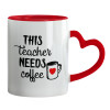 Τhis teacher needs coffee, Κούπα καρδιά χερούλι κόκκινη, κεραμική, 330ml