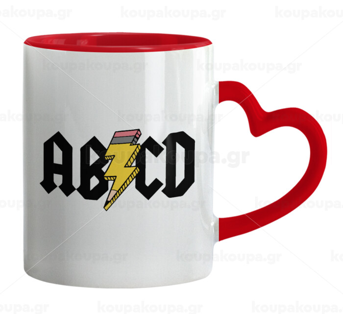 ABCD, Κούπα καρδιά χερούλι κόκκινη, κεραμική, 330ml