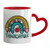 Teacher, Κούπα καρδιά χερούλι κόκκινη, κεραμική, 330ml