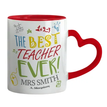 The best teacher ever!, Κούπα καρδιά χερούλι κόκκινη, κεραμική, 330ml