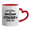 This is what an awesome teacher looks like hands!!! , Κούπα καρδιά χερούλι κόκκινη, κεραμική, 330ml