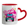 Barbie car, Κούπα καρδιά χερούλι κόκκινη, κεραμική, 330ml