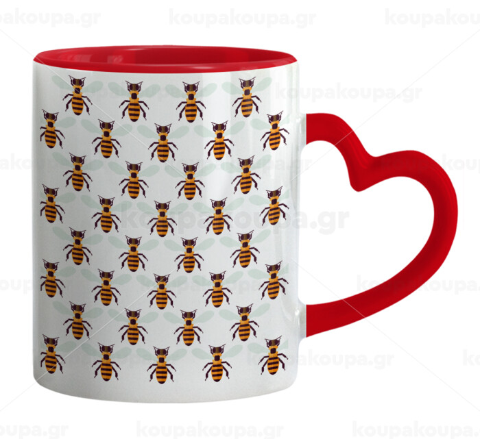 Μελισσούλες, Κούπα καρδιά χερούλι κόκκινη, κεραμική, 330ml