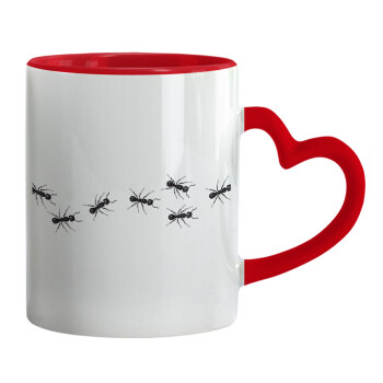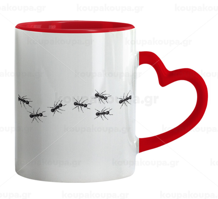 Μυρμήγκια, Κούπα καρδιά χερούλι κόκκινη, κεραμική, 330ml