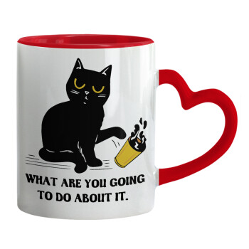 CAT, what are you going to do about it!, Κούπα καρδιά χερούλι κόκκινη, κεραμική, 330ml