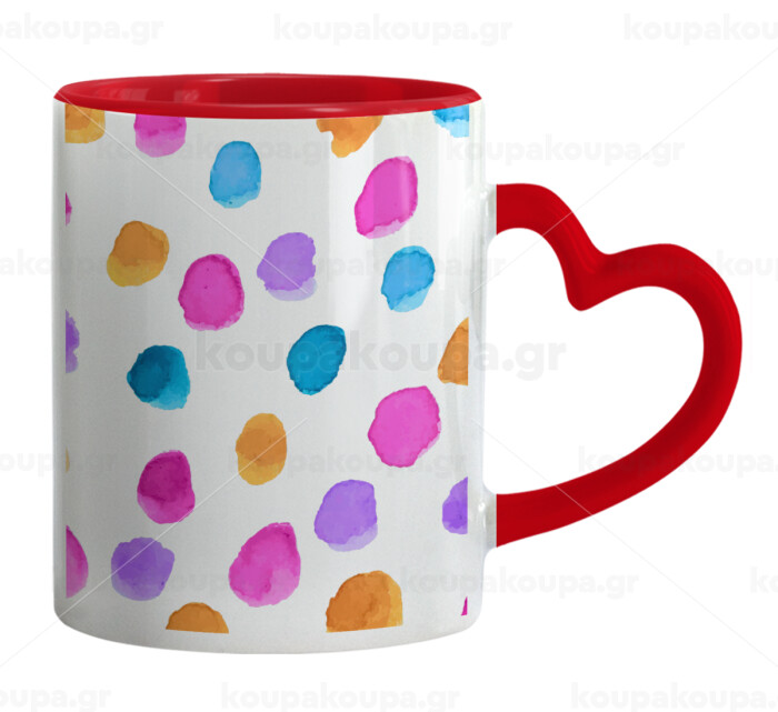 Watercolor dots, Κούπα καρδιά χερούλι κόκκινη, κεραμική, 330ml